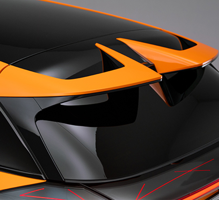 Other unique exterior features include the Active Grille System* regulating airflow into the front compartment to help you achieve optimal battery range, and the two-tone black roof^^ and Twin Aero Rear Spoiler^